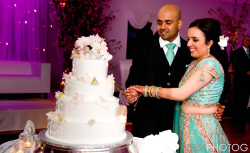 DJ, MC, Dhol player, lighting tech., one assistant, premium sound system, sound system for cocktail hour, 24 color kinetics LEDs for up lighting, 2 Martin 250 Entour moving heads on vertical trusses providing different lighting effects through out the evening, two 55 inch LED TVs and custom monogram.